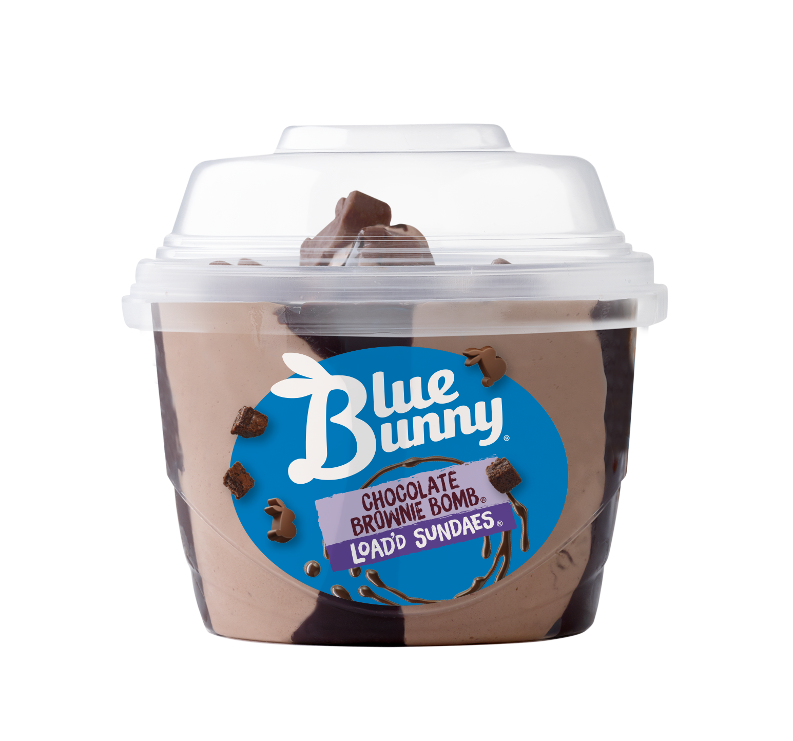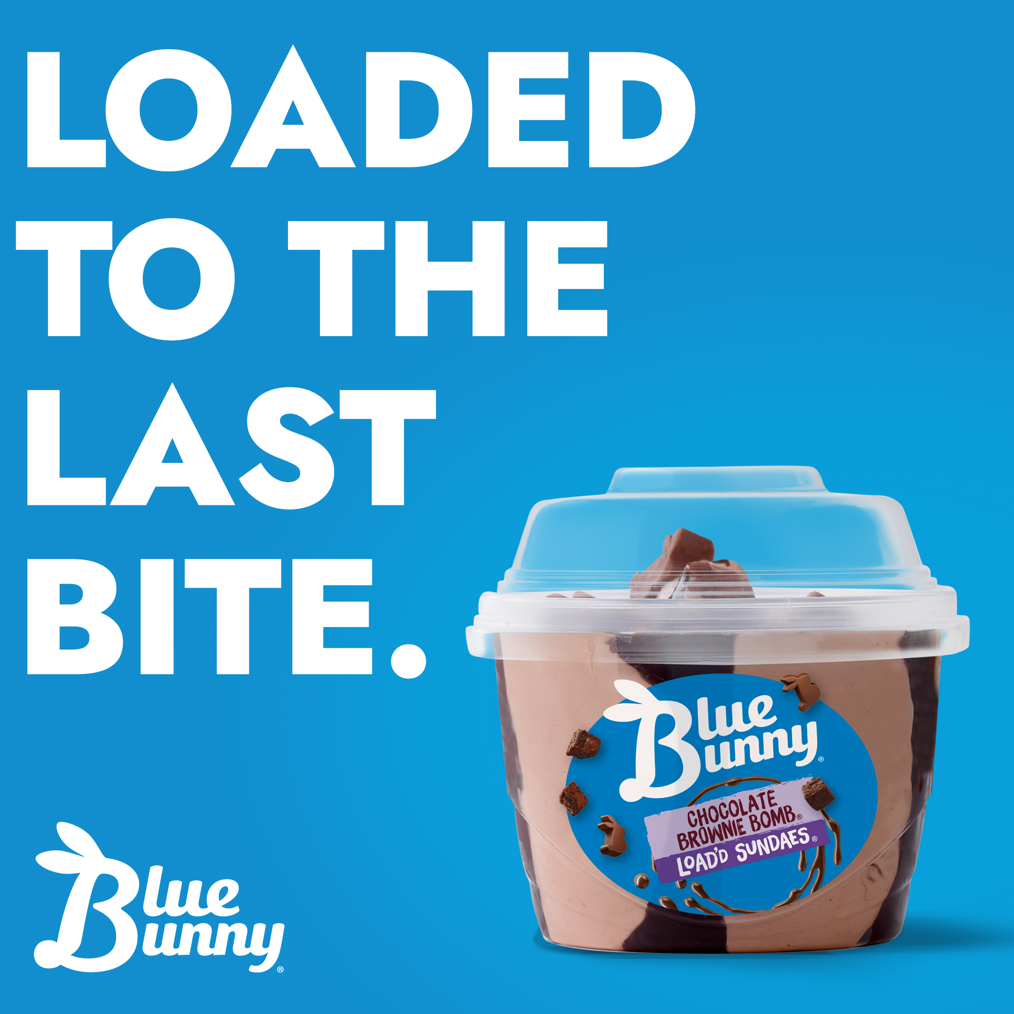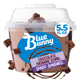 Now available in a 5.5 fl oz fun-sized cup! Indulge in the swirls and mix-ins packed into every spoonful of Blue Bunny Load'd Sundaes Chocolate Brownie Bomb Frozen Dairy Dessert. This one-of-a-kind sundae cup is loaded to the max with sundae toppings, so there's never a boring bite. Soft chocolate frozen dairy dessert is swirled through with ooey gooey chocolatey fudge, mixed with fudge brownie pieces and chocolatey fudge bunnies. It's a spoon-ready sundae experience straight from your freezer that is a chocolate lover's dream. What are you waiting for? Indulge in these portable, fully loaded frozen treats wherever you go. At work, in the car, on the couch—pretty much every place is more fun with these frozen desserts. Blue Bunny Load'd Sundaes come in compact, single-serve dessert cups, so it's easy to stock your freezer with all flavors of these sweet snacks. Blue Bunny—We Make Fun.