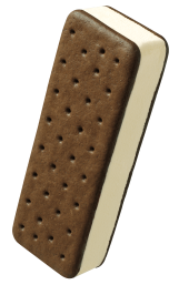 Artificially flavored vanilla low fat ice cream between two chocolate wafers.