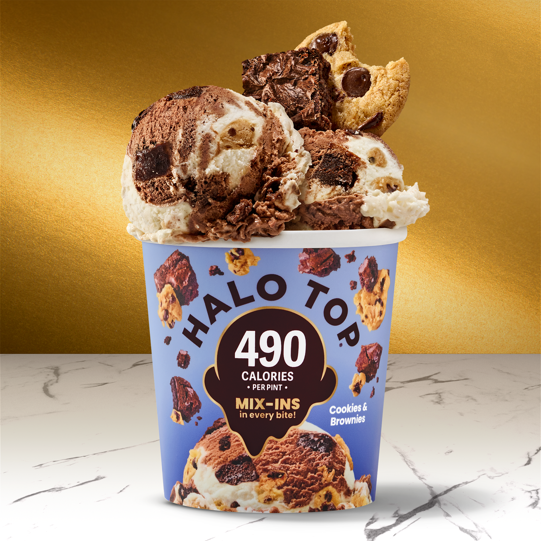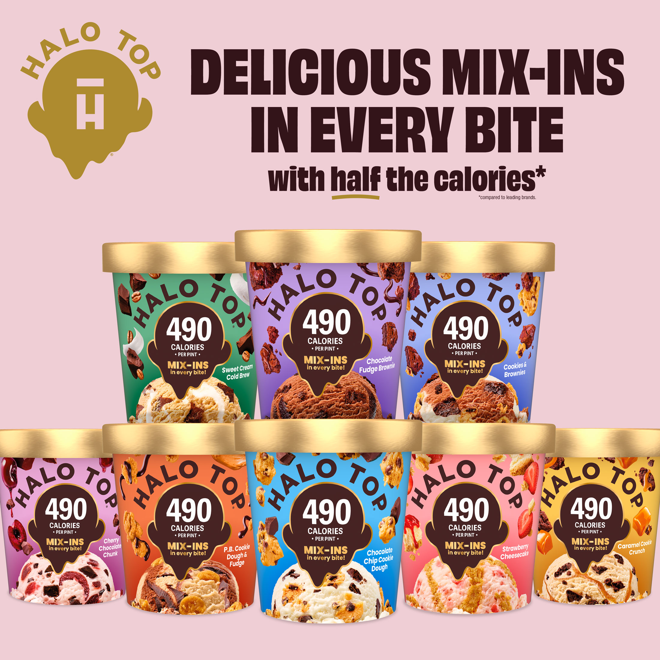 No need for a trip to the bakery! We swirled chocolate and cookie dough light ice creams and packed in chewy chocolate chip cookie dough and fudgy brownie pieces for a bite that brings the bakery straight to you. At Halo Top, we know that sometimes the best thing about ice cream is the mix-ins. Thats why we've loaded this pint with so many that you're sure to get some in every craveable bite.